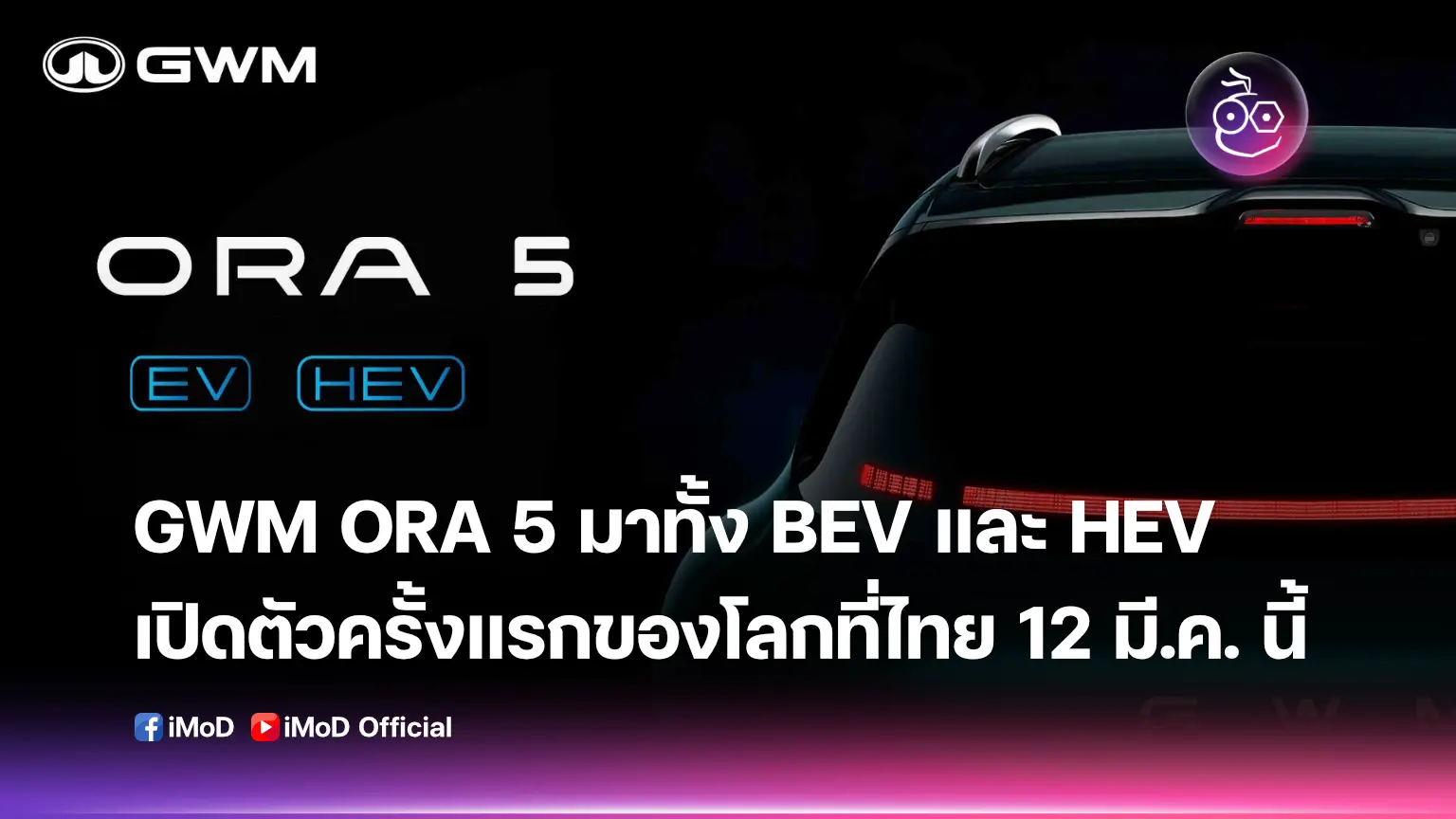 1.5k ดู GWM เตรียมเปิดตัว GWM ORA 5 ใน 2 ขุมพลัง ทั้ง BEV และ HEV ครั้งแรกของโลกที่ไทย 12 มี.ค. 69 นี้