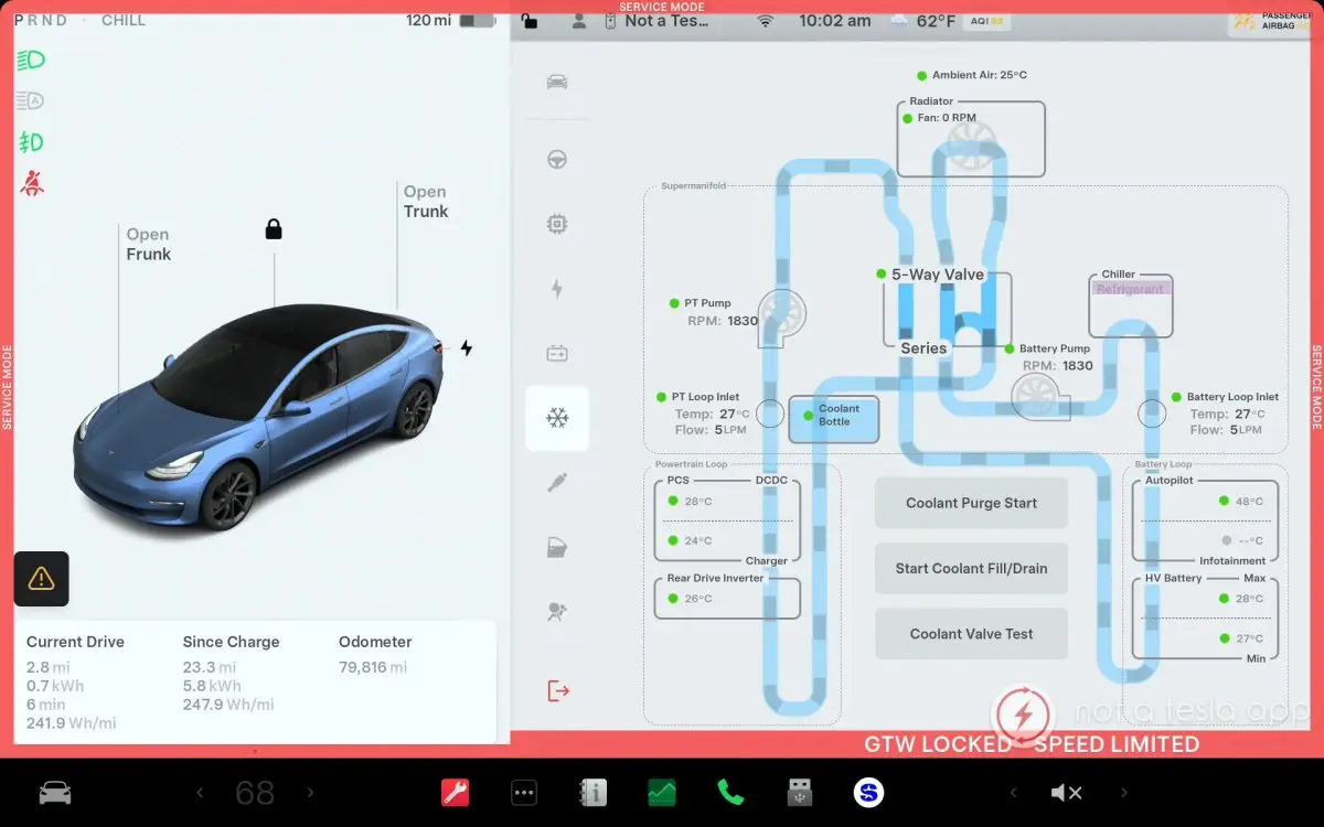 มีการเพิ่มแผง Frunk ใหม่ – ซึ่งแสดงภาพรวมสถานะฝาหน้า, สถานะสลัก และสถานะการปรับเทียบของฝาหน้า แผงนี้ยังให้ข้อมูลเพิ่มเติม เช่น แหล่งที่มาของคำขอ, ความสูงฝาหน้าทที่ตั้งไว้ และการตั้งค่าแบบแฮนด์ฟรี รุ่นที่รองรับ: Cybertruck
