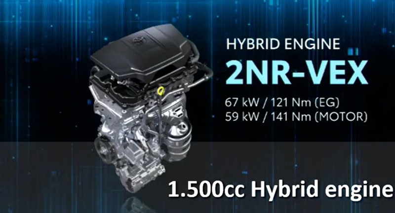 All NEW Toyota Yaris CROSS เวอร์ชันไทย มาพร้อมเครื่องยนต์เบนซิน 4 สูบ 1.5 ลิตร รหัส 2NR-VEX ให้พละกำลังสูงสุด 91 แรงม้า ที่ 5,500 รอบ/นาที แรงบิดสูงสุด 121 นิวตันเมตร ที่ 4,000 – 4,800 รอบ/นาที ทำงานร่วมกับมอเตอร์ไฟฟ้า 80 แรงม้า แรงบิด 141 นิวตันเมตร จับคู่กับเกียร์อัตโนมัติ e-CVT แบตเตอรี่ Lithium-ion ขับเคลื่อนล้อหน้า และเมื่อเครื่องยนต์ทำงานร่วมกับมอเตอร์ไฟฟ้า จะให้พละกำลังรวมสูงสุด 111 แรงม้า