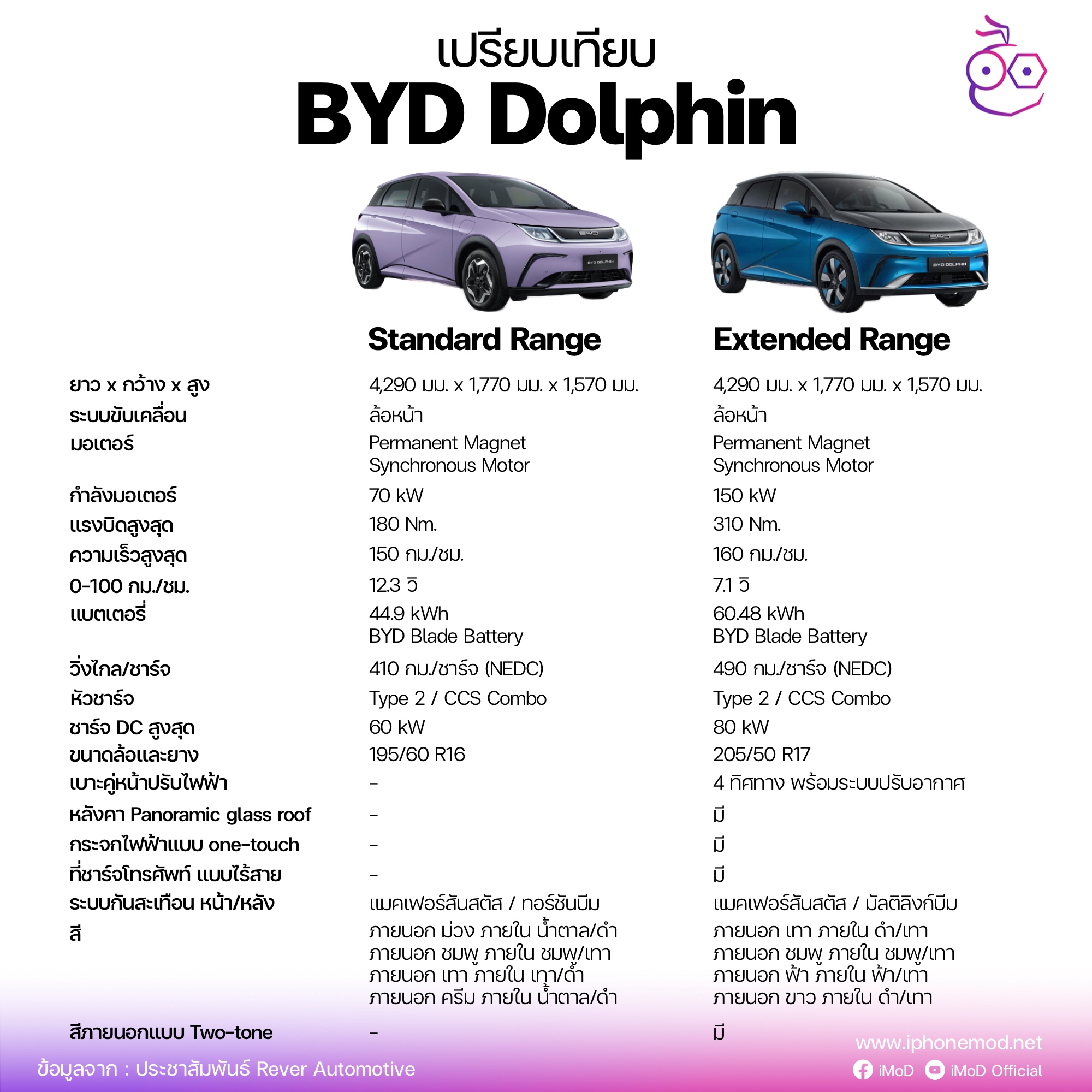 เปรียบเทียบสเปคไทย BYD Dolphin ทั้ง 2 รุ่น Standard Range และ Extended Range