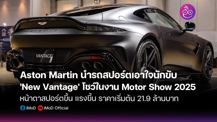 Aston Martin Bangkok ผู้จำหน่ายยนตรกรรมสปอร์ตจากประเทศอังกฤษ ‘แอสตัน มาร์ติน’ อย่างเป็นทางการแต่เพียงผู้เดียวในประเทศไทย จัดแสดงรุ่น ‘แวนเทจ ใหม่’ ยนตรกรรมสปอร์ตสุดฮาร์ดคอร์ ที่เป็นเสมือนตัวแทนของสมรรถนะขั้นสูงสุดของสายพันธุ์ แวนเทจ ที่ถือกำเนิด มากว่า 76 ปี ภายในงาน บางกอก อินเตอร์เนชั่นแนล มอเตอร์ โชว์ ครั้งที่ 46 ระหว่างวันที่ 26 มีนาคม ถึง 6 เมษายน 2568 ณ ศูนย์แสดงสินค้าและการประชุม อิมแพ็ค