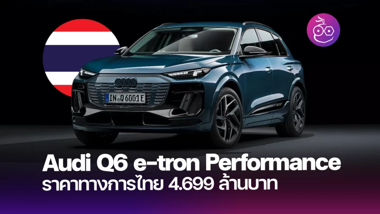 Audi ประเทศไทย เปิดตัวพร้อมเผยราคา Q6 e-tron Performance รถ SUV ขนาดกลาง โดยรุ่นที่วางขายในประเทศไทยนั้นเป็นรุ่นมอเตอร์เดี่ยว ขับเคลื่อนล้อหลัง (RWD) ราคาเริ่มต้น 4.699 ล้านบาท