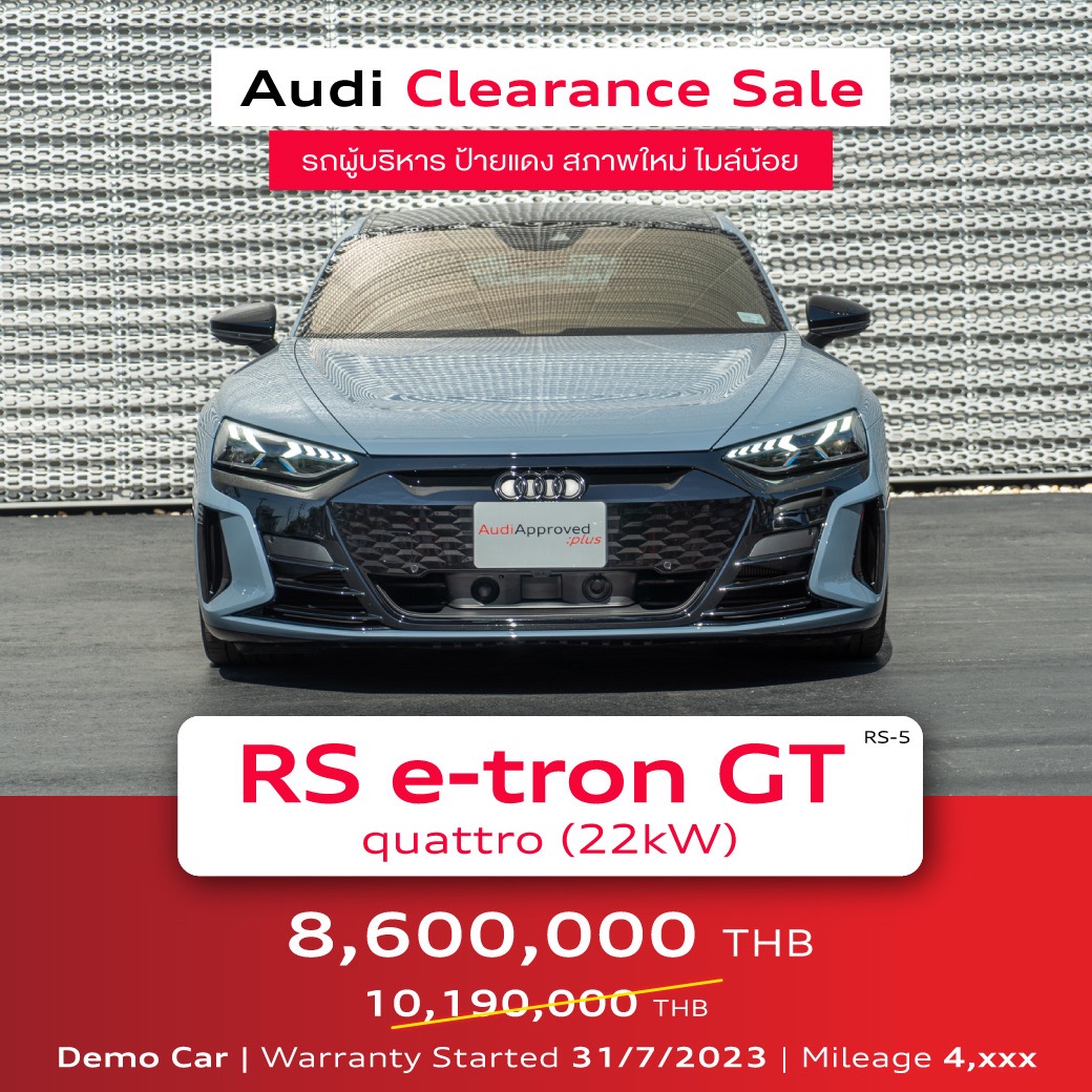 - RS e-tron GT quattro (22kW) ราคาพิเศษ 8,600,000 บาท จากราคา 10,190,000 บาท