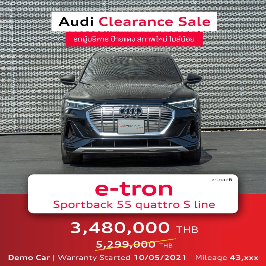 - e-tron Sportback 55 quattro S line ราคาพิเศษ 3,480,000 บาท จากราคา 5,299,000 บาท