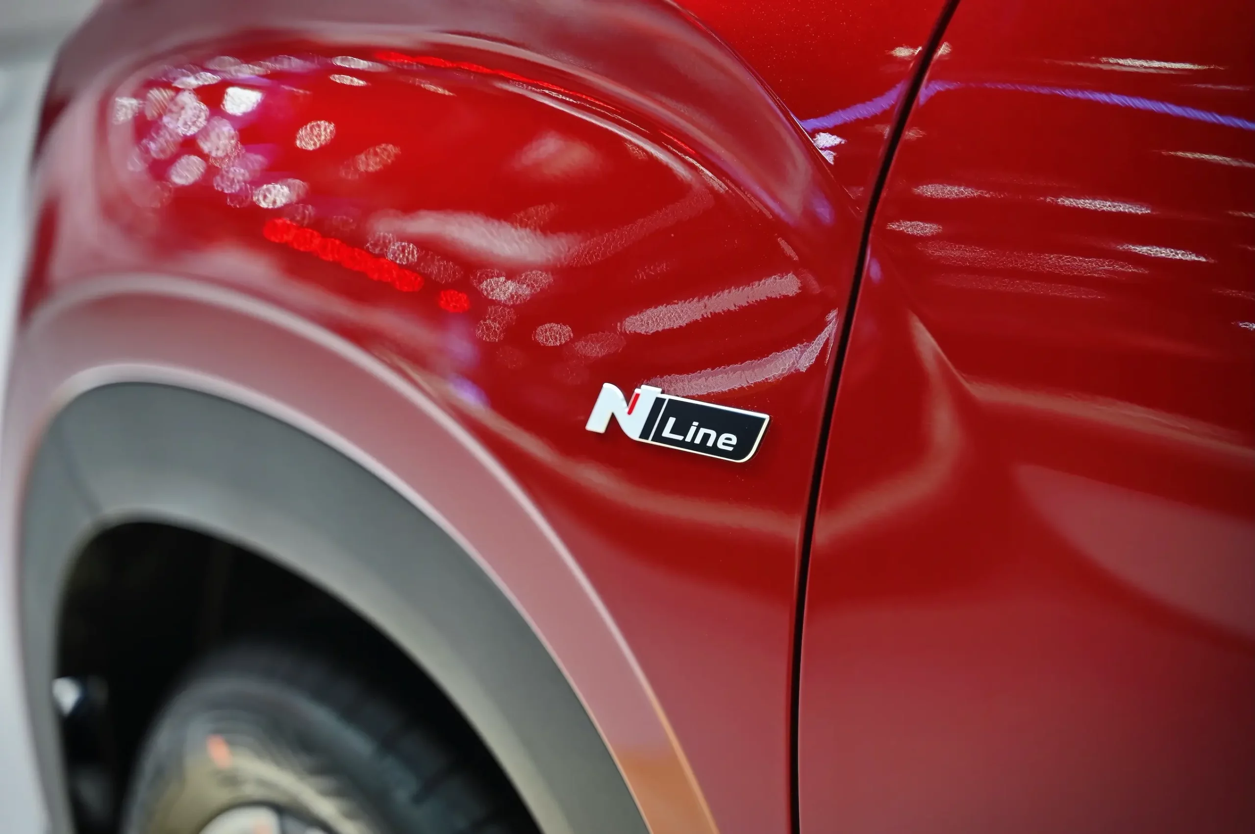 N Line ถูกพัฒนาขึ้นเพื่อปลุกเร้าความตื่นเต้นตั้งแต่แรกเห็น โดยการออกแบบของ ซังยอฟ ลี (SangYup Lee) หัวหน้าทีมนักออกแบบแห่ง Hyundai Global Design Center เน้นความโดดเด่นด้วยด้วยกระจังหน้าแบบสปอร์ต กันชนหน้า–หลังทรงใหม่ ล้ออัลลอยเฉพาะรุ่น N Line สปอยเลอร์ท้าย และปลายท่อไอเสียโครเมียมคู่ การตกแต่งห้องโดยสารสะท้อนความสปอร์ต ระดับพรีเมียมด้วยเบาะหนังเดินด้ายแดง พร้อมโลโก้ N Line พวงมาลัยทรงสปอร์ต แป้นคันเร่งแบบโลหะ และวัสดุ Alcantara ที่ให้สัมผัสหรูหราเหนือระดับ เปิดประตูสู่ “มิติใหม่ของรถสปอร์ตที่คุณขับได้ทุกวัน”
