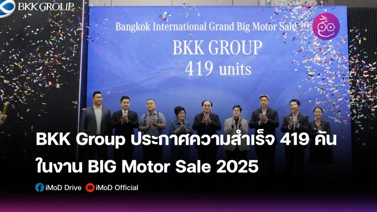 กลุ่มบริษัท BKK Group ประสบความสำเร็จอย่างงดงามในงาน BIG Motor Sale 2025 ด้วยกระแสตอบรับล้นหลามจากลูกค้ากลุ่มรถยนต์พรีเมียมและพลังงานไฟฟ้า โดยทำยอดจองรวมตลอด 10 วัน ได้ถึง 419 คัน