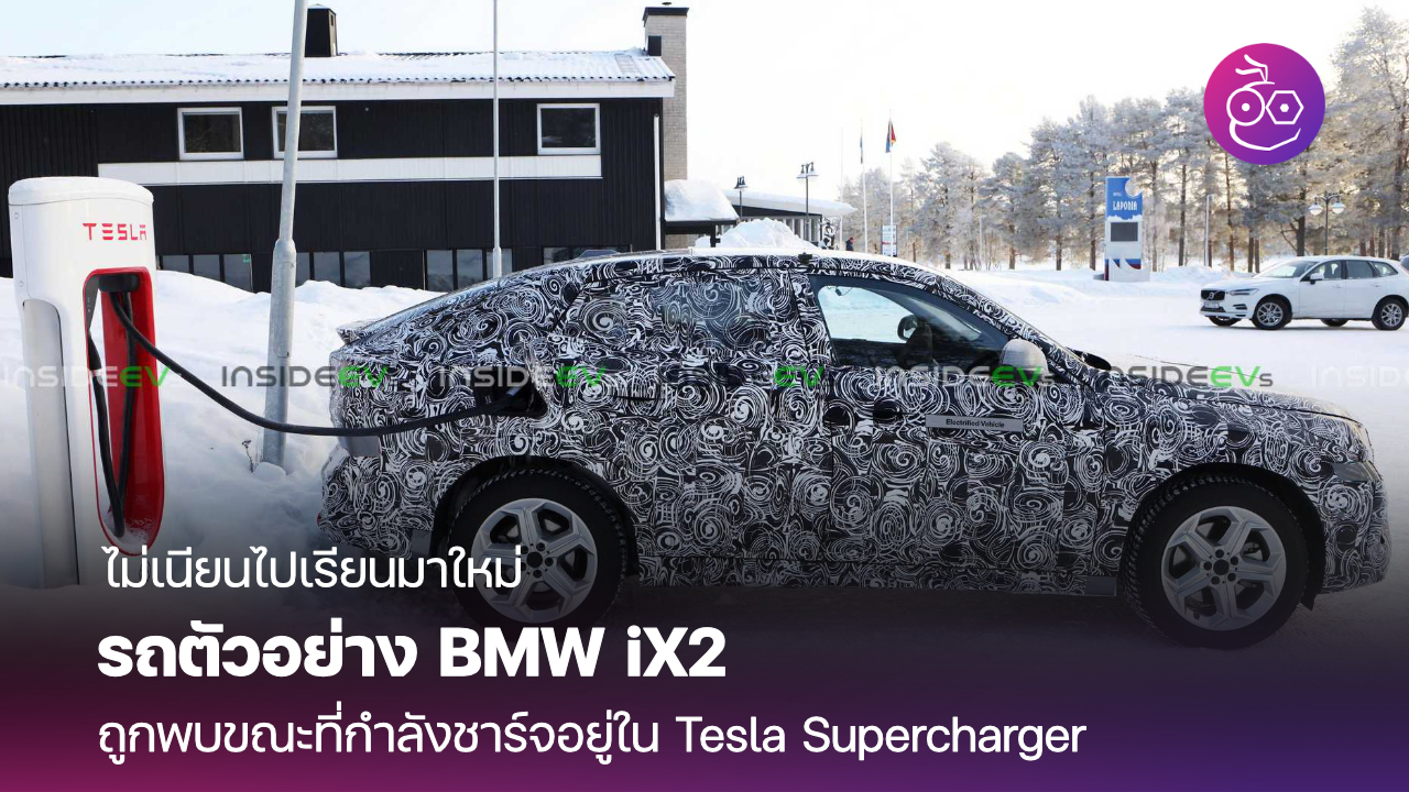 พบรถตัวอย่าง BMW iX2 ถูกพบขณะกำลังจอดชาร์จอยู่ที่ Tesla Supercharger ในประเทศทางเหนือของยุโรป เรียกได้ว่าเป็นภาพหาชมได้ยากเลยทีเดียว ภายหลังทราบมาว่ารถคันอื่นก็สามารถใช้งานสถานีชาร์จดังกล่าวได้ในทวีปยุโรป