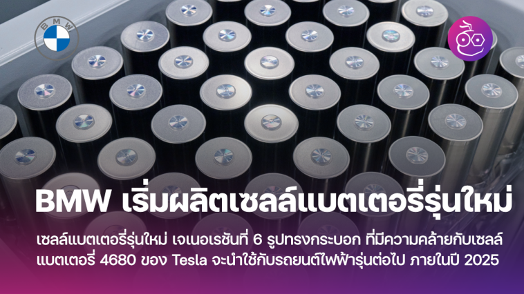 BMW เริ่มผลิตตัวอย่างเซลล์แบตเตอรี่รุ่นใหม่ เจเนอเรชันที่ 6 รูปทรงกระบอก ที่มีความคล้ายกับ เซลล์แบตเตอรี่ 4680 ของ Tesla