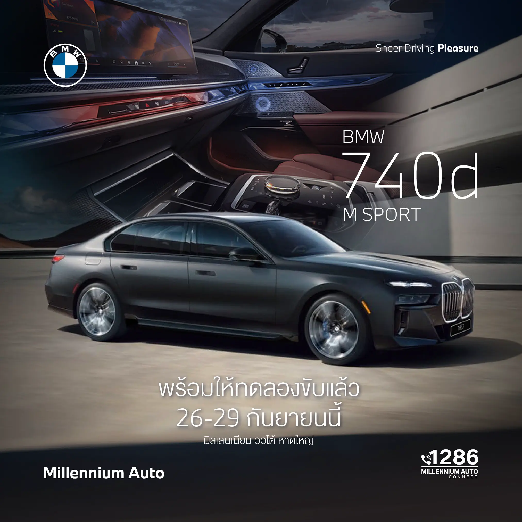 พรชัย ลีลาเกียรติไพบูลย์ ผู้จัดการทั่วไป มิลเลนเนียม ออโต้ กรุ๊ป สาขาหาดใหญ่ และสาขาภูเก็ต เผยว่า บีเอ็มดับเบิลยู มิลเลนเนียม ออโต้ หาดใหญ่ ตั้งใจรังสรรค์ประสบการณ์สุดพิเศษ สำหรับลูกค้าที่ชื่นชอบความหรูหรามีระดับ สไตล์ ‘THE HAUS OF LUXE’ ชวนสัมผัสความหรูหราเพื่อการเดินทางสุดเอ็กซ์คลูซีฟ ผ่านยนตรกรรม บีเอ็มดับเบิลยู หลากรุ่น อาทิ The XM, THE 7 THE i7 และ THE X7 โดดเด่นทั้งรูปลักษณ์และสมรรถนะเต็มพิกัด ขอเชิญชวนลูกค้าทุกท่าน มาสัมผัสและทดลองขับคันที่ใช่ พร้อมรับข้อเสนอสุดพิเศษโดนใจแห่งปี”