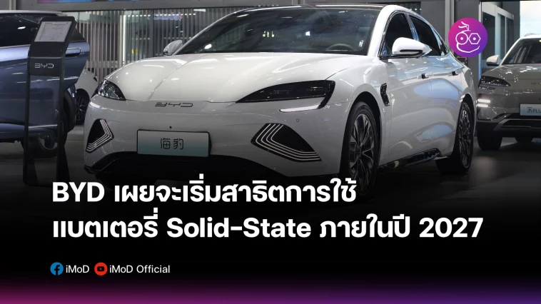 BYD ผู้ผลิตรถยนต์สัญชาติจีนเปิดเผยแผนเกี่ยวกับแบตเตอรี่ว่า บริษัทจะเริ่มสาธิตการใช้งานแบตเตอรี่รถยนต์ไฟฟ้าแบบ Solid-State ครั้งแรกภายในปี 2027
