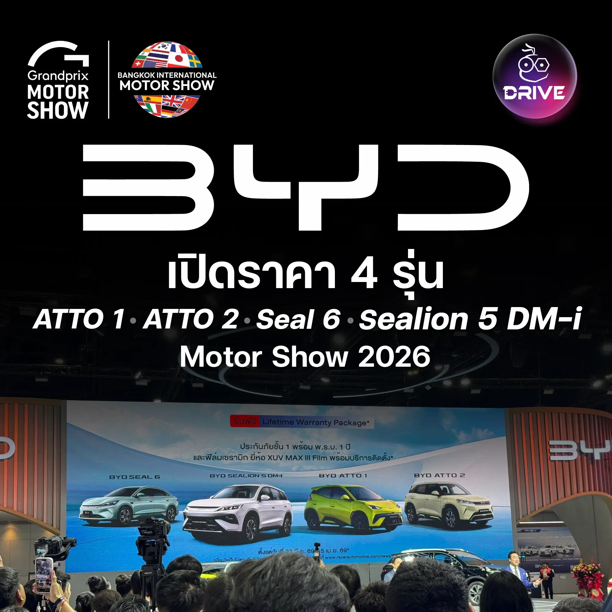 เปิดราคา BYD 4 รุ่น ATTO1 , ATTO 2 , Seal 6 และ Sealion 5 DM-i และพิเศษในงาน Motor Show 2026 รับ Lifttime Warranty