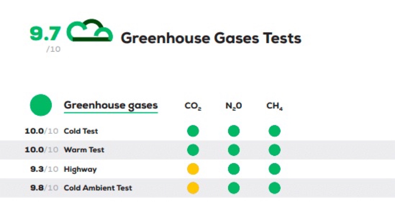 BYD ATTO 3 เป็นรถยนต์พลังงานไฟฟ้าล้วน ดังนั้นการปล่อยก๊าซเรือนกระจก (GHG) จึงมาจากแหล่งจ่ายไฟฟ้าเท่านั้น มีค่าอยู่ที่ 50-80g CO2-eq./km (ขึ้นอยู่กับปริมาณการใช้ไฟฟ้าในการทดสอบ) ซึ่งรายงานจาก Green NCAP ระบุว่า ด้วยระบบส่งกำลัง แนววคิดเรื่องการทำความร้อน และการปล่อยก๊าซคาร์บอนไดออกไซด์ที่ค่อนข้างต่ำ ทำให้รถยนต์มีคะแนน GPG สูงถึง 9.7 จาก 10 คะแนน