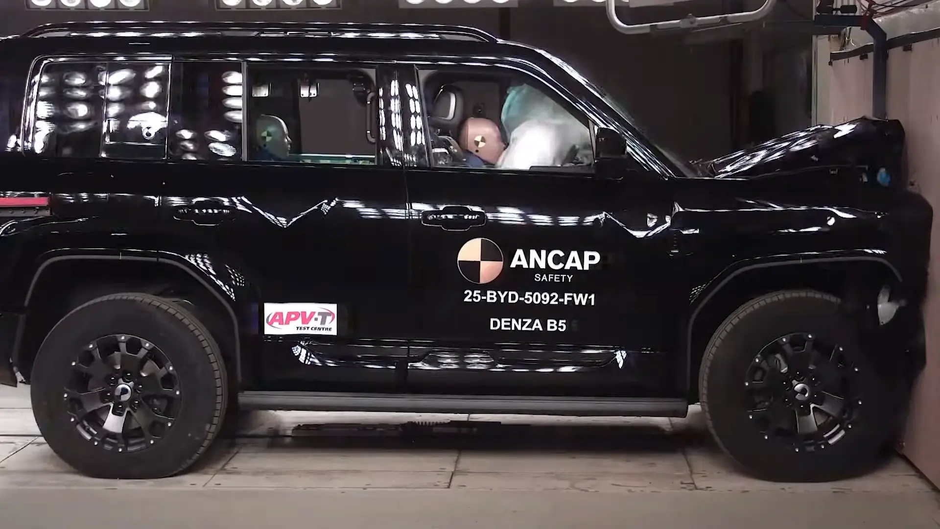 Denza B5 รถ SUV ขุมพลังปลั๊กอินไฮบริด (PHEV) โครงสร้างตัวถังแบบ Body-on-frame จากค่าย BYD ประสบความสำเร็จในการคว้าคะแนนความปลอดภัยระดับ 5 ดาว จากการทดสอบการชนของสถาบัน ANCAP โดยทำคะแนนได้ดีเยี่ยมในเกือบทุกสถานการณ์การทดสอบ ทั้งนี้ รถรุ่นดังกล่าววางจำหน่ายในประเทศจีนภายใต้ชื่อ Fang Cheng Bao Bao 5