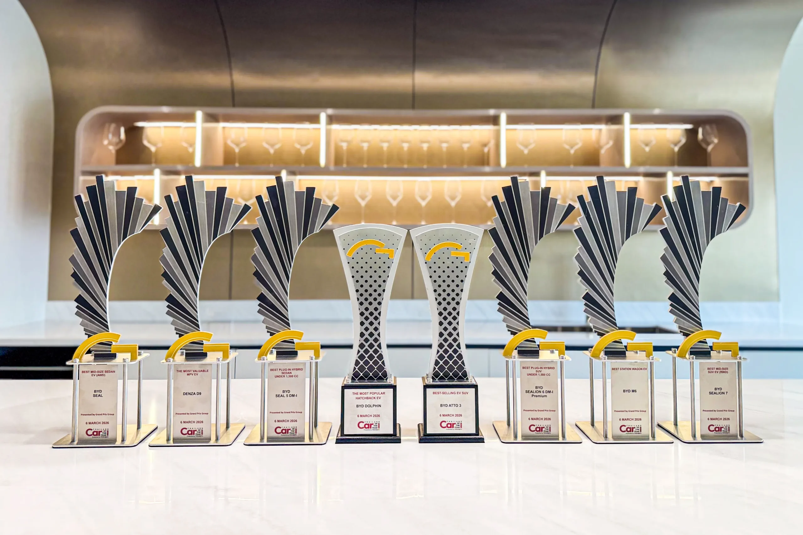 บริษัท เรเว่ ออโตโมทีฟ จำกัด คว้ารางวัลรถยนต์ยอดเยี่ยม ทั้ง 8 รุ่น จาก Thailand Car of The Year 2026 ได้แก่ BYD SEAL 5 DM-i, BYD SEALION 6 DM-i, BYD SEAL, BYD M6, BYD SEALION 7, DENZA D9, BYD DOLPHIN และ BYD ATTO 3