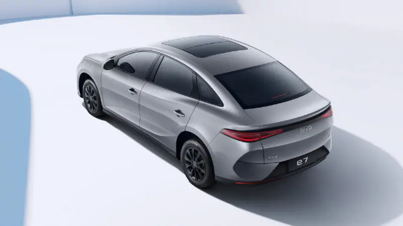 ไฟท้ายของ BYD e7 ใช้แบบแยกข้าง ซึ่งแตกต่างจากรถรุ่นอื่นของ BYD ที่มักใช้ไฟท้ายแบบยาวทั้งสองฝั่ง