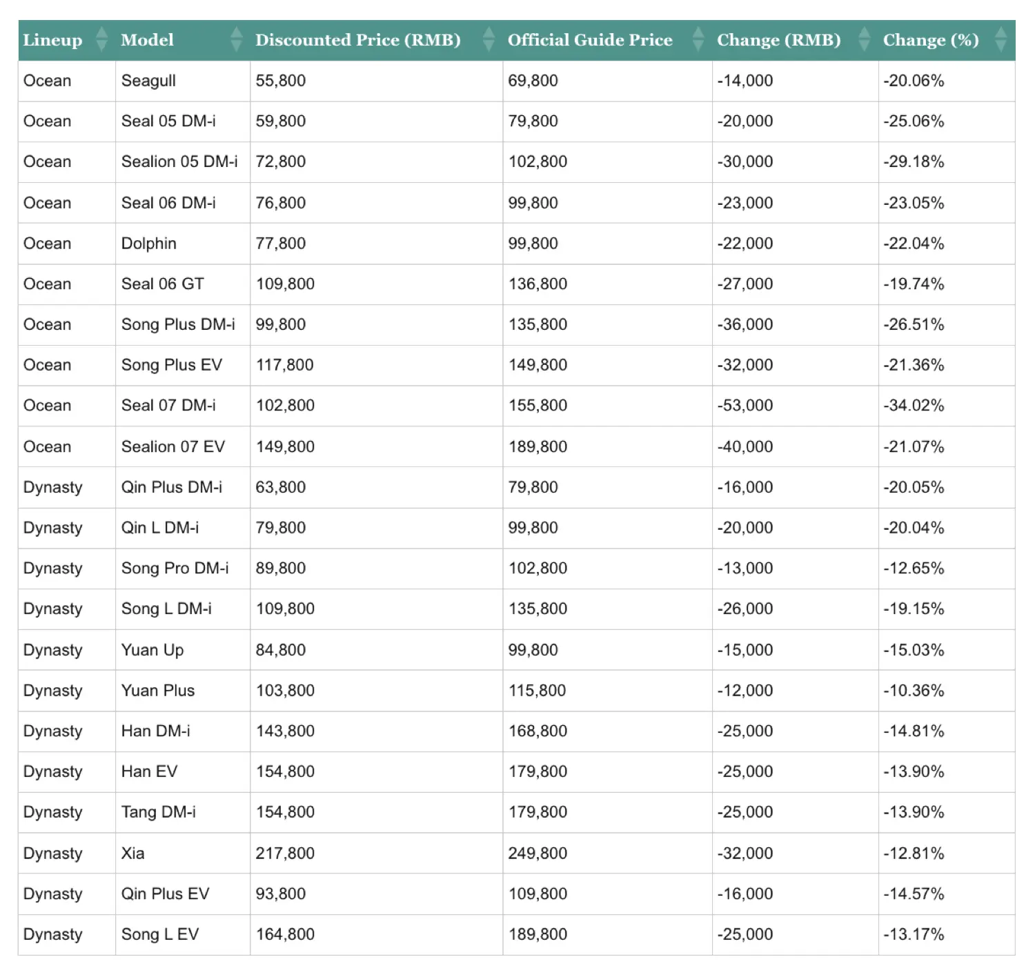 ในช่วงปลายเดือนพฤษภาคมที่ผ่านมา BYD ได้ประกาศลดราคารถยนต์ถึง 22 รุ่น โดยบางรุ่นมีการลดราคาสูงกว่า 30% กลยุทธ์เชิงรุกนี้เป็นผลมาจากการตั้งเป้ายอดขายที่สูงของบริษัท โดย BYD ตั้งเป้าที่จะขายรถให้ได้ถึง 5.5 ล้านคันในปี 2025 ซึ่งเพิ่มขึ้นจากปีก่อนหน้าถึง 30%