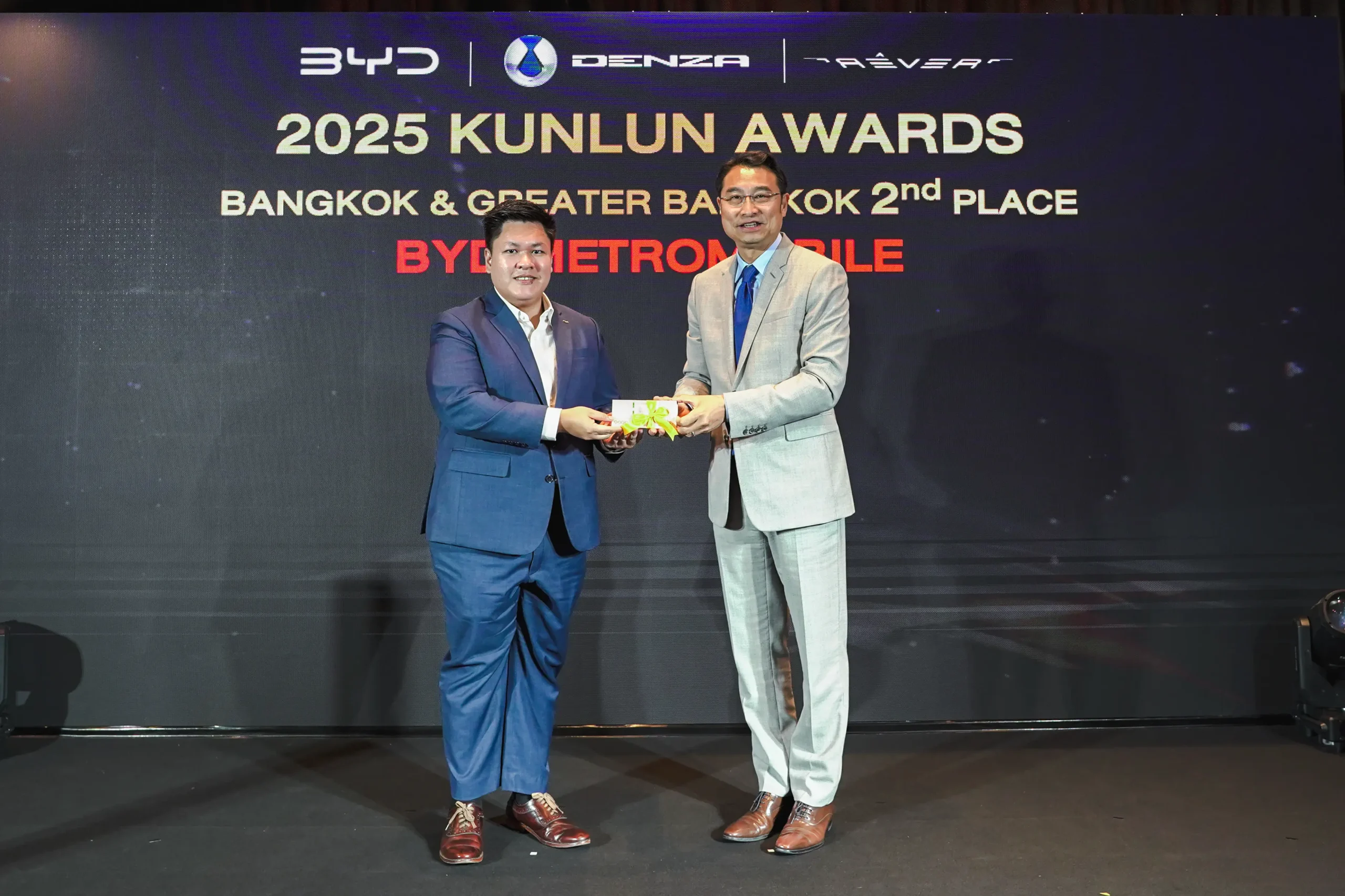 บริษัท บีวายดี ออโต้ (ประเทศไทย) จำกัด และ บริษัท เรเว่ ออโตโมทีฟ จำกัด ภายใต้ กลุ่มธุรกิจเรเว่ ผู้จัดจำหน่ายและให้บริการหลังการขายรถยนต์พลังงานใหม่ บีวายดี และ เดนซ่า อย่างเป็นทางการในประเทศไทย จัดพิธีมอบรางวัลผู้จำหน่ายดีเด่น KUNLUN Award 2025 เพื่อเป็นเกียรติยศแก่กลุ่มผู้จำหน่ายรถยนต์ บีวายดี ที่มีผลงานโดดเด่น ทั้งยังเป็นการสร้างขวัญและกำลังใจ มิใช่เพียงเพื่อเป็นการรักษามาตรฐานที่ดีเอาไว้เพียงอย่างเดียว แต่เพื่อเพิ่มแรงจูงใจในการพัฒนาให้ดียิ่งขึ้นต่อไปอีกด้วย