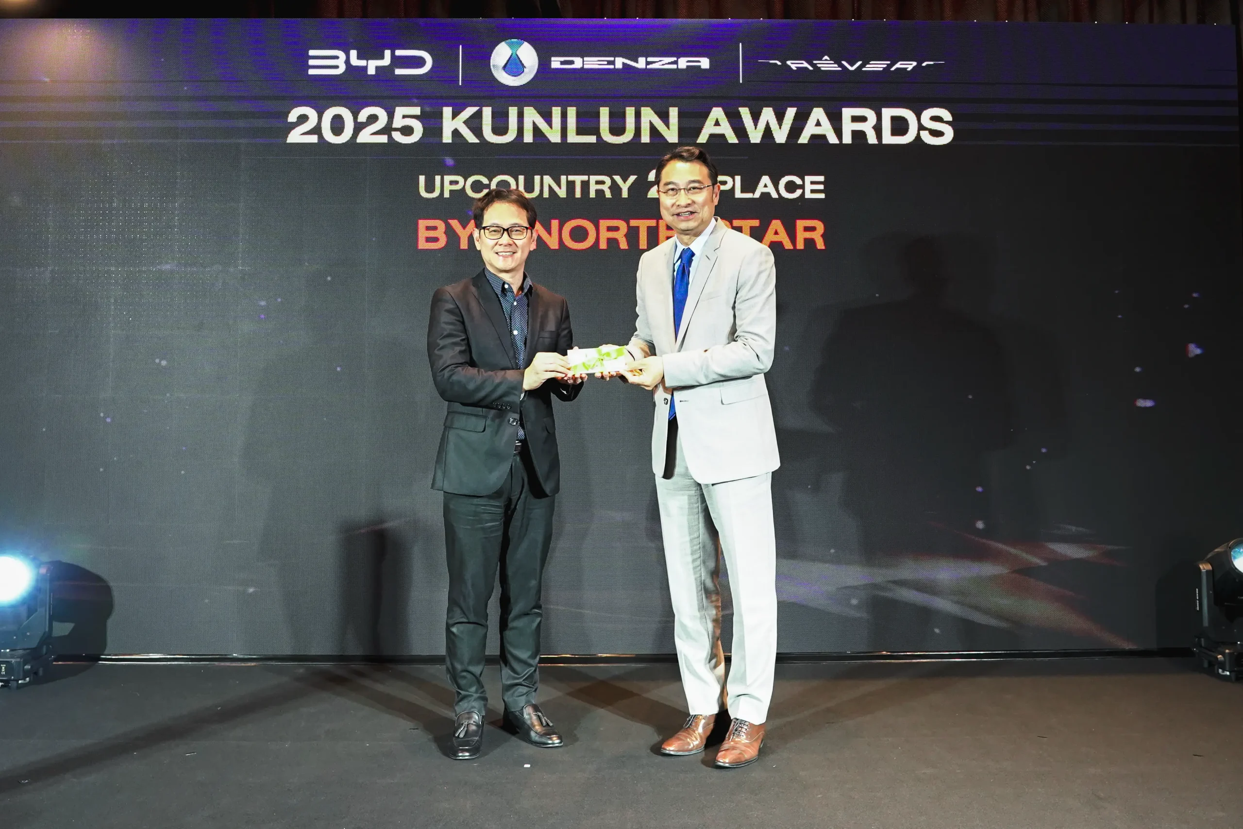 นอกจากรางวัล KUNLUN Award 2025 บีวายดี ประเทศไทย และ เรเว่ ยังมอบรางวัลผู้จำหน่ายดีเด่นอีกสองสาขา ประกอบด้วย รางวัล HUASHAN Award 2025 และ รางวัล TAISHAN Award โดยชื่อรางวัลทั้งหมดตั้งชื่อตามขุนเขาที่ยิ่งใหญ่ และมีชื่อเสียงจากประเทศจีน ประกอบด้วย เทือกเขาคุนหลุน, ภูเขาหัวซาน และ ภูเขาไท่ซาน สะท้อนถึงความแข็งแกร่งดั่งขุนเขาของผู้จำหน่ายรถยนต์ บีวายดี ที่มุ่งมั่นไม่ย่อท้อต่อการสร้างความประทับใจ ผ่านการให้บริการอันยอดเยี่ยม จนได้รับความไว้วางใจจากผู้บริโภค และนำไปสู่การเติบโตของรถยนต์ บีวายดี