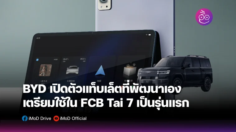 BYD ผู้ผลิตรถยนต์พลังงานใหม่ (NEV) ยักษ์ใหญ่ของจีน ประกาศว่าแท็บเล็ตที่พัฒนาขึ้นเองเครื่องแรกของบริษัท จะถูกนำไปใช้ในรถ SUV ไฮบริดรุ่น Tai 7 ของแบรนด์ลูกอย่าง Fang Cheng Bao