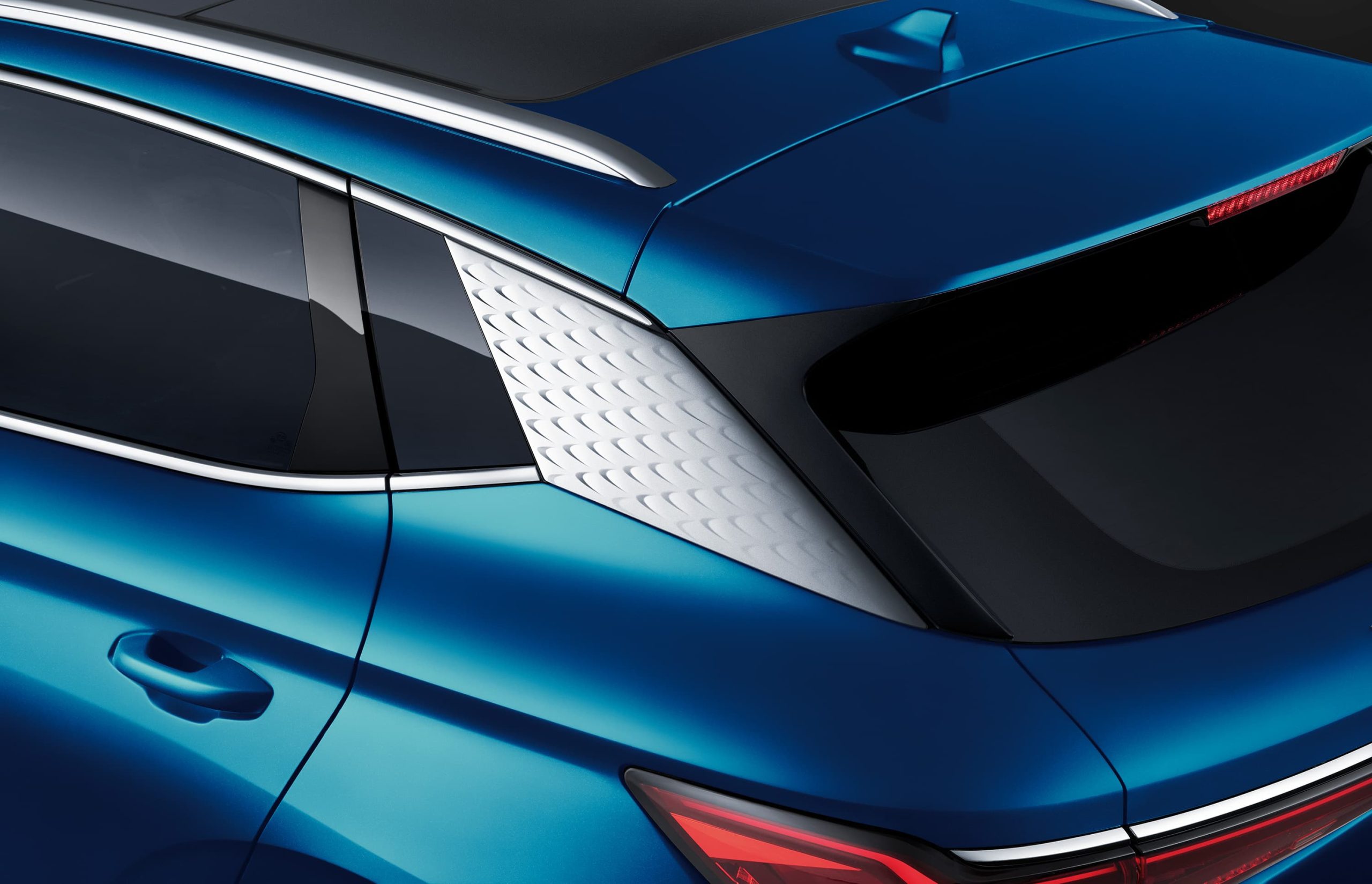 เสา C วัสดุขึ้นรูปลายคลื่นน้ำ หลังคา Panoramic Sunroof เปิด-ปิดด้วยระบบไฟฟ้าพร้อมระบบป้องกันการหนีบ ด้านหลังสโลปลงพร้อมสปอยเลอร์ ไฟท้าย LED คาดยาวซ้าย จรดขวาประดุจปีกนก ไฟเลี้ยว Sequential สะดุดตาไม่เหมือนใคร เปิด-ปิดประตูท้ายด้วยระบบไฟฟ้าแบบ One-Touch ล้ออัลลอยด์ 18 นิ้วที่ออกแบบโดยคำนึงถึงหลักอากาศพลศาสตร์ โดยมีให้เลือกถึง 5 สี ได้แก่ ขาว Frost เทา Graphite ฟ้า Lagoon เขียว Emerald และ แดง Solar
