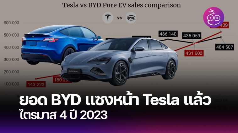 โดยทาง BYD ออกมาประกาศยอดขายรถยนต์ไฟฟ้า 100% ได้ทั้งหมด 526,409 คัน ในขณะที่ Tesla ได้ส่งมอบรถไปทั้งหมด 484,507 คัน อีกทั้งทั้งสองบริษัทสามารถทำยอดได้มากกว่ายอดคาดการณ์ในปีที่แล้วอีกด้วย BYD ทำยอดขายรถยนต์ไปได้ 3 ล้านคัน และ Tesla ทำยอดขายได้ 1.8 ล้านคันในปี 2023