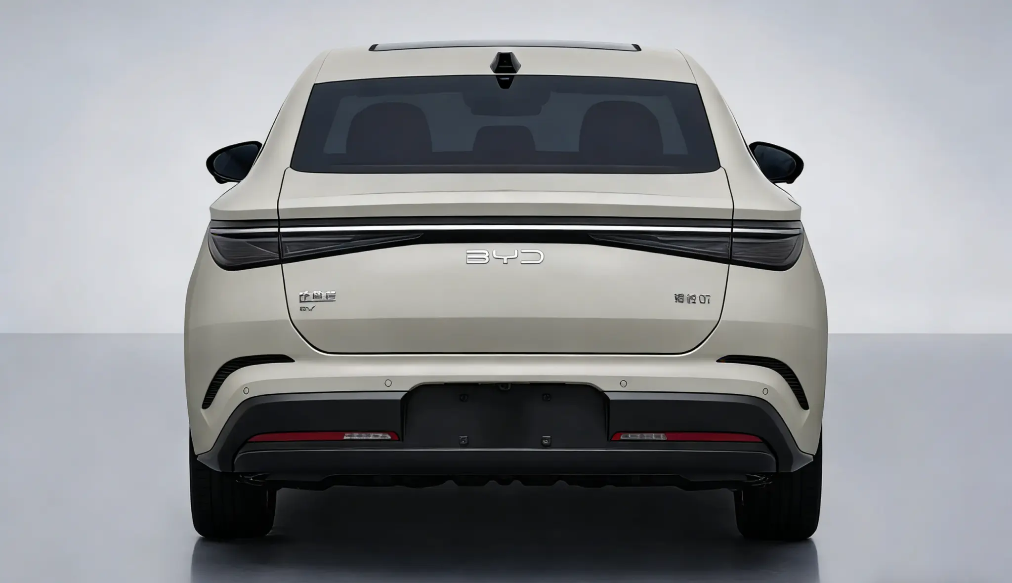 ท้ายรถใช้ชุดไฟท้ายแบบพาดยาวเต็มความกว้างตัวรถเช่นเดียวกับรุ่นปลั๊กอินไฮบริด จะต่างตรงที่มีโลโก้ EV ติดอยู่ฝั่งซ้ายของฝาท้าย เพื่อแยกให้ต่างจากรุ่น Seal 07 DM-i