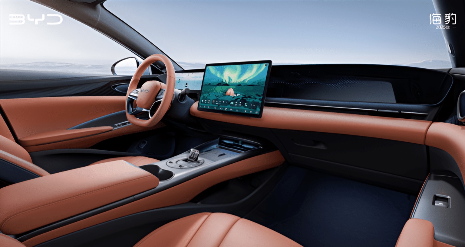 มาถึงภายในของ BYD Seal 2025 ได้รับการออกแบบใหม่ ใช้พวงมาลัยสี่ก้านแบบแบน หน้าจออินโฟเทนเมนต์ขนาดใหญ่ตรงกลาง สามารถปรับหมุนได้ และยังมีหน้าจอ W-HUD ที่แสดงข้อมูลการขับขี่บนกระจกหน้า ภายในมีคอนโซลกลางที่ดูเรียบง่ายขึ้น พร้อมกับปุ่มควบคุมต่าง ๆ มีแท่นชาร์จโทรศัพท์ไร้สาย ส่วนด้านหน้าเห็นได้ชัดว่ามีการปรับให้เรียบขึ้นด้วยการซ่อนช่องระบายอากาศ เสริมความปลอดภัยด้วยถุงลมนิรภัย 13 จุด