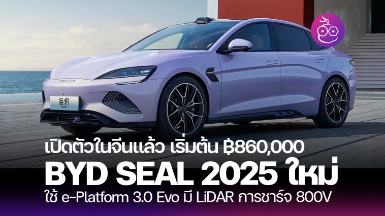BYD เปิดตัวรถยนต์ไฟฟ้าซีดาน Seal 2025 ใหม่อย่างเป็นทางการในประเทศจีน ในราคาเริ่มต้น 175,800 หยวนหรือประมาณ 860,000 บาท มาพร้อมเทคโนโลยี SiC และใช้แพลตฟอรณ์มแรงดันไฟฟ้า 800V รวมถึงมีการติดตั้งเซ็นเซอร์ LiDAR บนหลังคา สำหรับระบบช่วยเหลือผู้ขับขี่ขั้นสูง