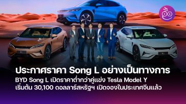 BYD ได้เผยภาพรถยนต์ไฟฟ้ารุ่น Song L เวอร์ชันผลิตจริง เตรียมเปิดตัวอย่างเป็นทางการในงาน Chengdu Auto Show ช่วงไตรมาสที่ 4 ของปีนี้ คาดว่าราคาเริ่มต้นประมาณ 200,000 หยวน (27,600 ดอลลาร์สหรัฐฯ หรือประมาณ 971,000 บาท)