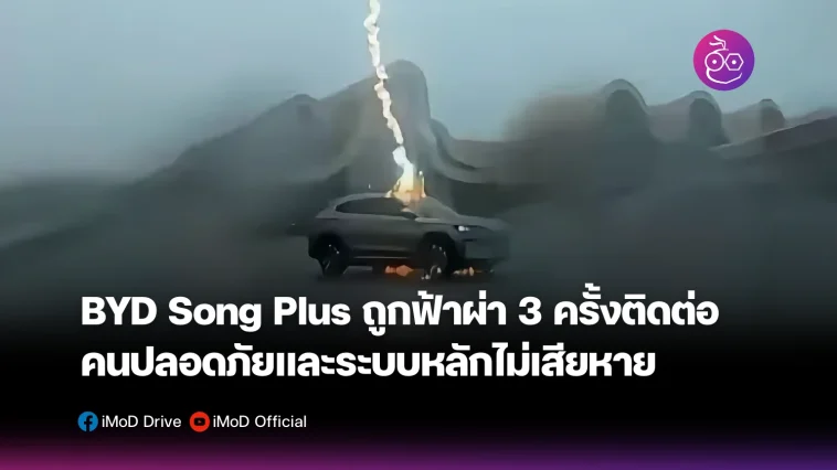 รถยนต์ไฟฟ้า BYD Song Plus รอดพ้นจากฟ้าผ่า 3 ครั้งรวด คนปลอดภัยและระบบหลักไม่เสียหาย