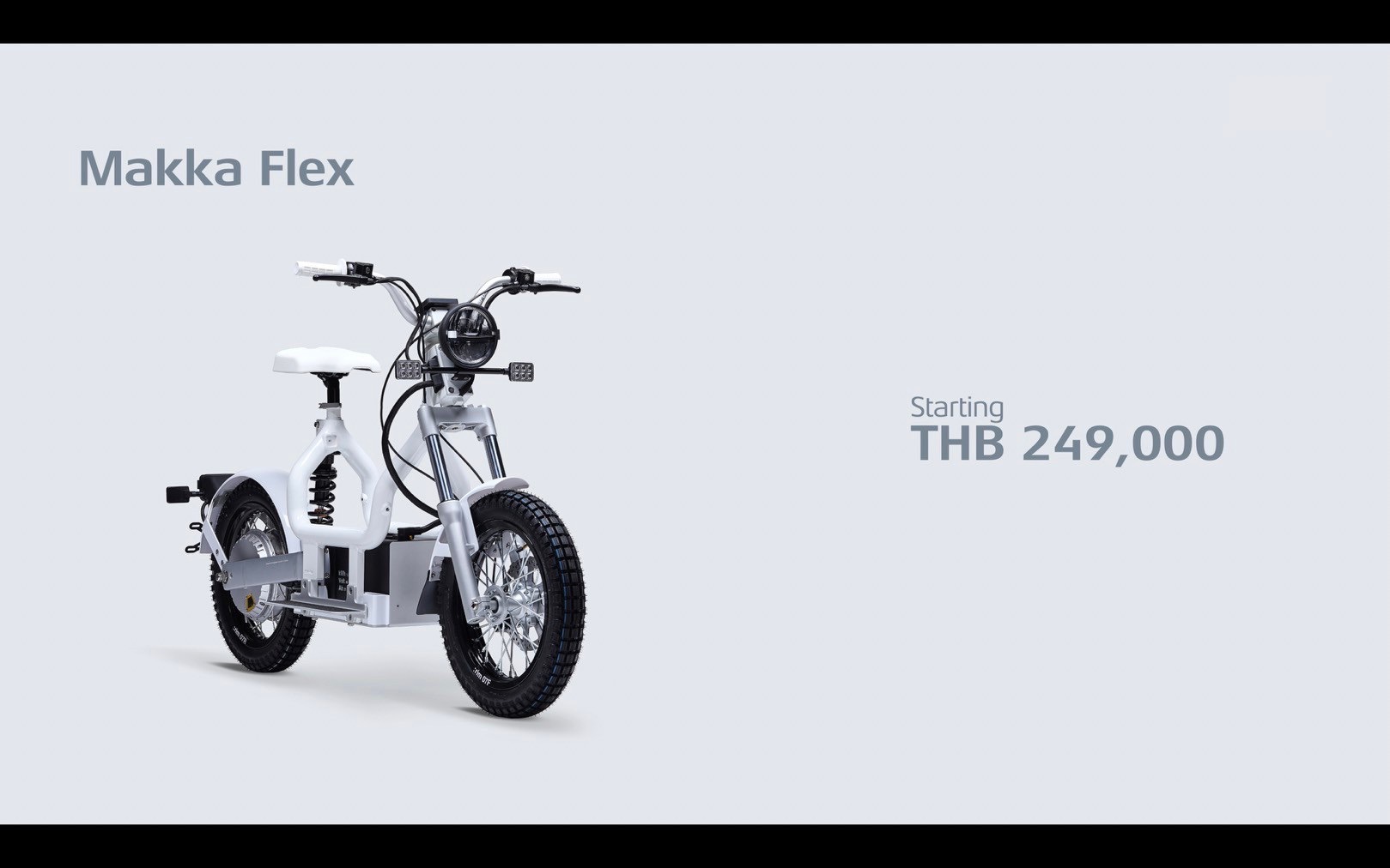 Makka Flex เป็นจักรยานยนต์ไฟฟ้าที่เน้นความคล่องตัว น้ำหนักเบา และเงียบ มี 2 รุ่นให้เลือกด้วยกัน ได้แก่ รุ่น ความเร็วสูงสุด 45 กม./ชม. และรุ่นความเร็วสูงสุด 25 กม./ชม. มาพร้อมระบบเบรกอิเล็กทรอนิกส์ มีระบบเบรกที่คืนไฟให้กับแบตเตอรี่ได้ เพิ่มระยะทางได้มากขึ้น