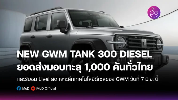 GWM จุดพลุฉลอง “NEW GWM TANK 300 DIESEL” กับยอดส่งมอบทะลุ 1,000 คันทั่วไทย และ เตรียมรับชม Live! เจาะลึกเทคโนโลยีดีเซลของ GWM ครั้งแรกในไทย ในงาน “GWM DIESEL TECH NIGHT”