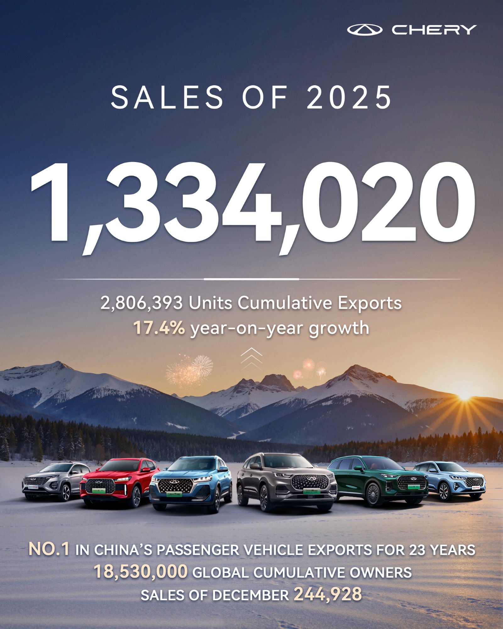 ขณะเดียวกัน เชอรี กรุ๊ป ในประเทศไทย สามารถทำยอดจดทะเบียนได้สูงสุดในเดือนธันวาคม 2568 ที่ผ่านมา โดยเฉพาะรถยนต์ เชอรี รุ่น V23 ซึ่งได้รับการตอบรับอย่างดีเยี่ยมและสามารถครองยอดจดทะเบียนเป็นอันดับ 1 ในรถยนต์ EV ทรงกล่อง เดือนธันวาคม 2568 สะท้อนถึงการตอบรับเป็นอย่างดีจากผู้บริโภคชาวไทยที่มีต่อ แบรนด์เชอรี ทั้งในด้านดีไซน์ สมรรถนะ และคุณภาพของผลิตภัณฑ์