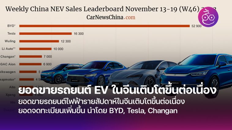 ในระหว่างที่มีการจัดงาน Guangzhou Auto Show ในประเทศจีนที่มีการเปิดตัวรถรุ่นใหม่มากมาย แต่ยอดขายรถยนต์ไฟฟ้าในประเทศจีนยังคงเติบโตขึ้นอย่างต่อเนื่อง รายงานจากยอดจดทะเบียนรายสัปดาห์เทียบกับสัปดาห์ก่อนหน้า