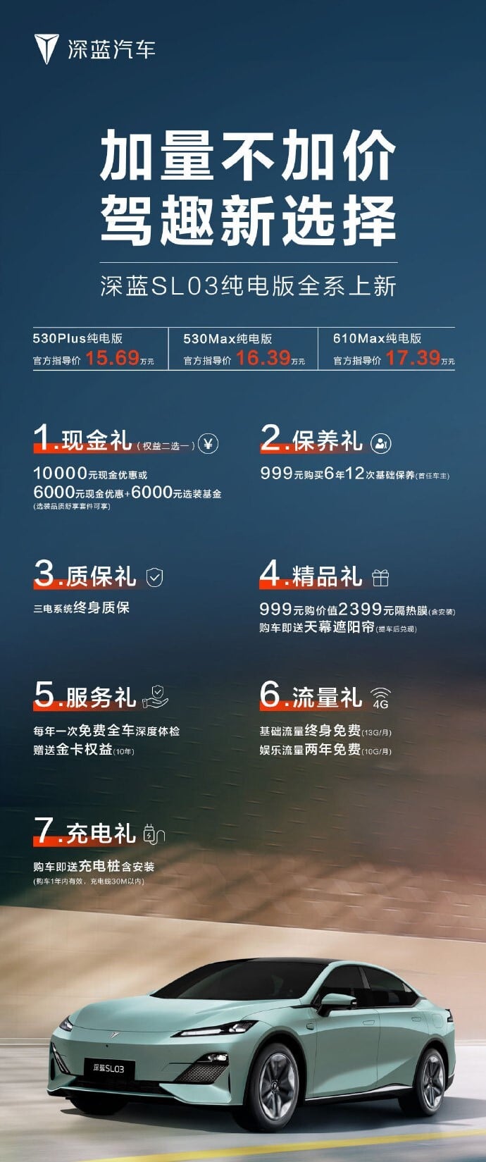 - Deepal SL03 รุ่น 610 Max ราคา 173,900 หยวน (ประมาณ 884,000 บาท)