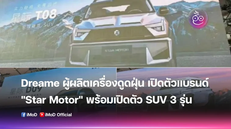 บริษัท Dreame Technology เปิดตัวแบรนด์รถยนต์ไฟฟ้าใหม่อย่างเป็นทางการในชื่อ “Star Motor” พร้อมเปิดตัว SUV 3 รุ่น Star T08, Star T08L และ Star D09 ในงาน Dreame Night เมื่อวันที่ 4 กุมภาพันธ์ 2026 ที่ผ่านมา