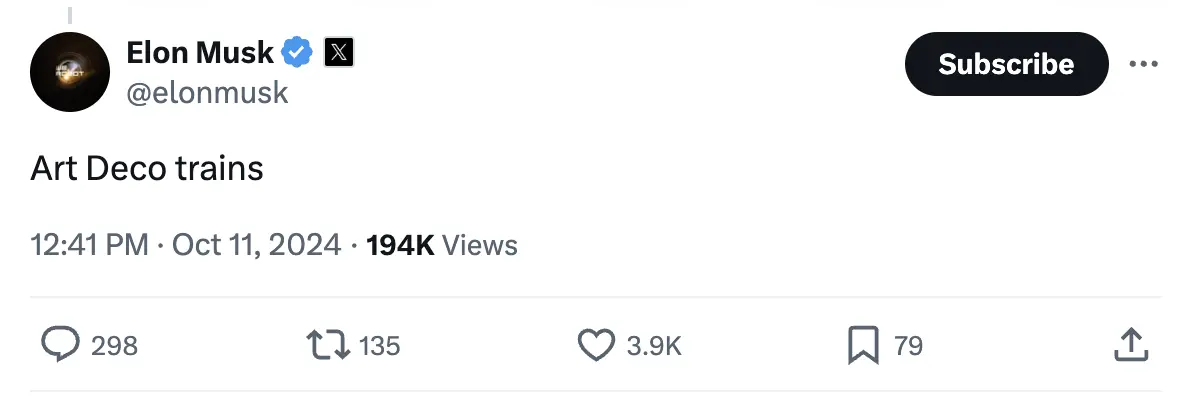 ล่าสุด Elon Musk ได้อธิบายเกี่ยวกับรถ Robovan บน X ว่าเป็น Futuristic Art Deco Bus หรือรถบัส Art Deco แห่งอนาคต ในโพสต์ดังกล่าวมีผู้มาตอบกลับมากมาย โดยหลายคนตั้งคำถามเกี่ยวกับแรงบันดาลใจในการออกแบบรถคันนี้