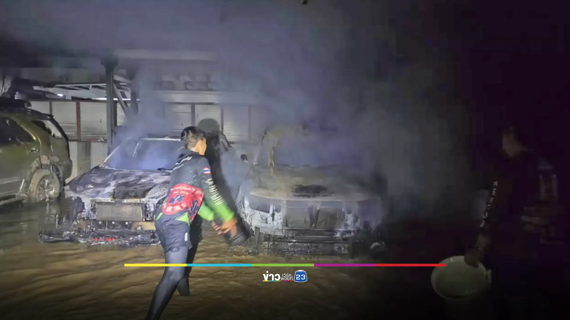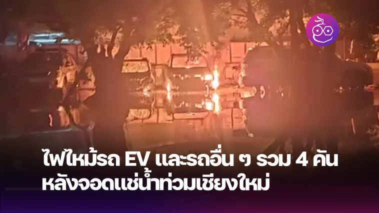 รถยนต์ EV ไฟลุกไหม้ ลามรถยนต์คันอื่นรวม 4 คัน หลังจอดแช่น้ำท่วมเชียงใหม่ (อยู่ระหว่างตรวจสอบสาเหตุ)