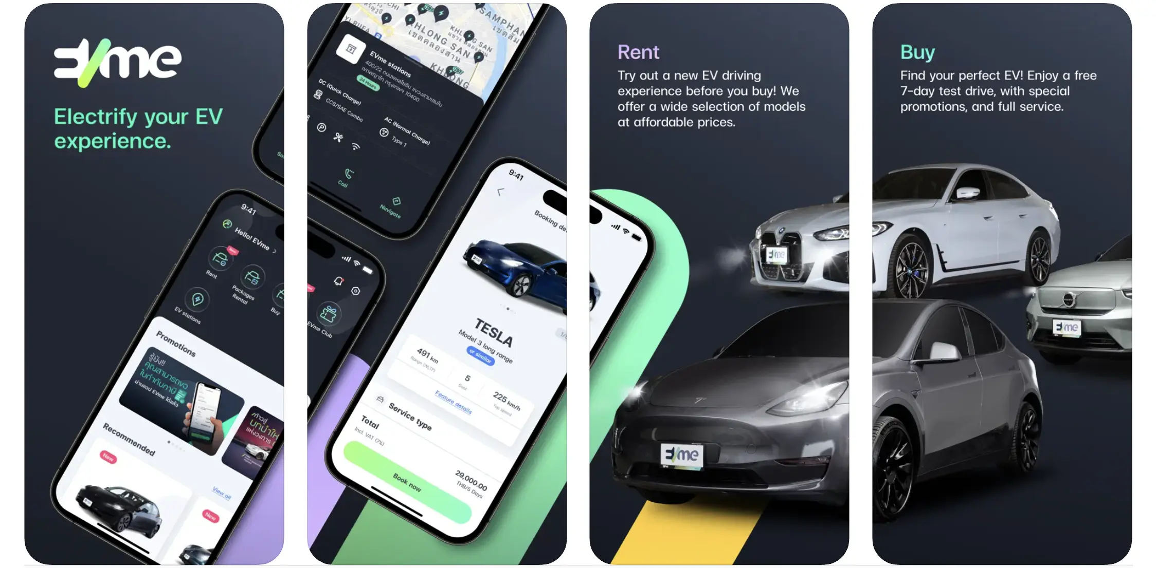 1. EVme – แอปเช่ารถ EV จองง่าย พร้อมเที่ยว