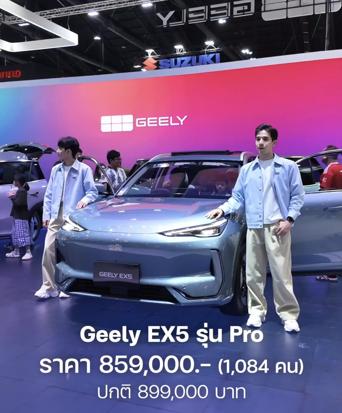 - Geely EX 5 รุ่น Pro ราคา 859,000 บาท สำหรับ 1,084 คันแรก (ราคาปกติ 899,000 บาท)