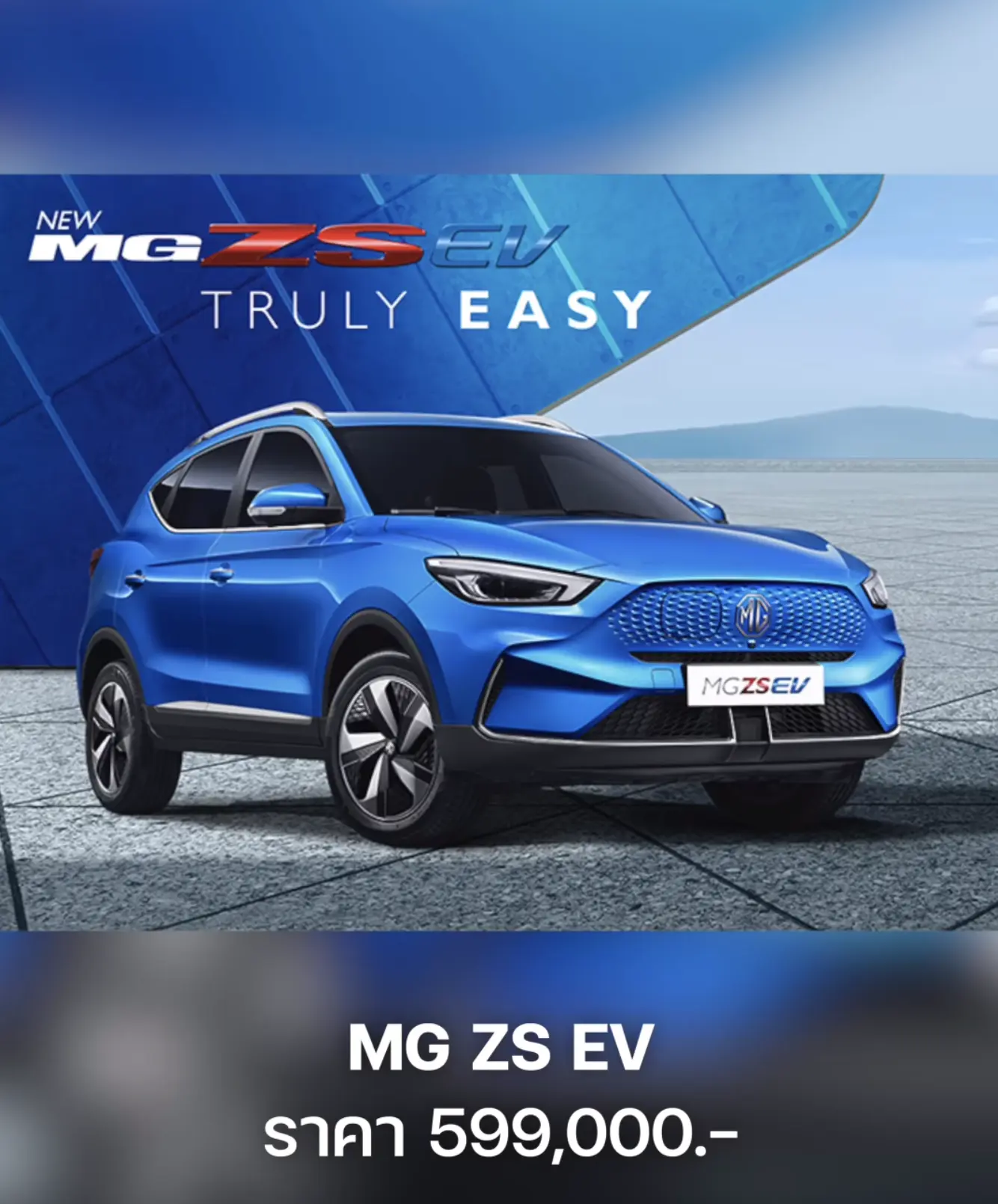 - MG ZS EV ราคาเริ่มต้น 599,000 บาท