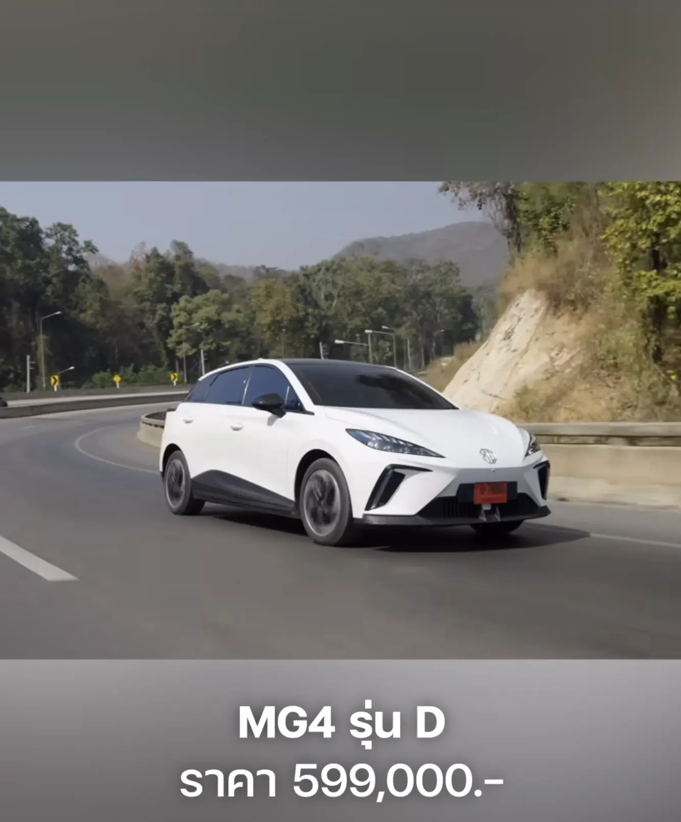 - MG4 รุ่น D ราคา 599,000 บาท (ลดจากเดิม 110,000 บาท)