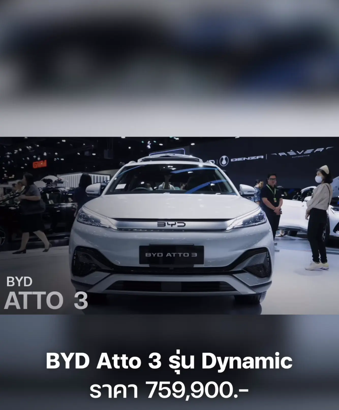 - BYD ATTO 3 รุ่น Dynamic ราคาแนะนำ 759,900 บาท
