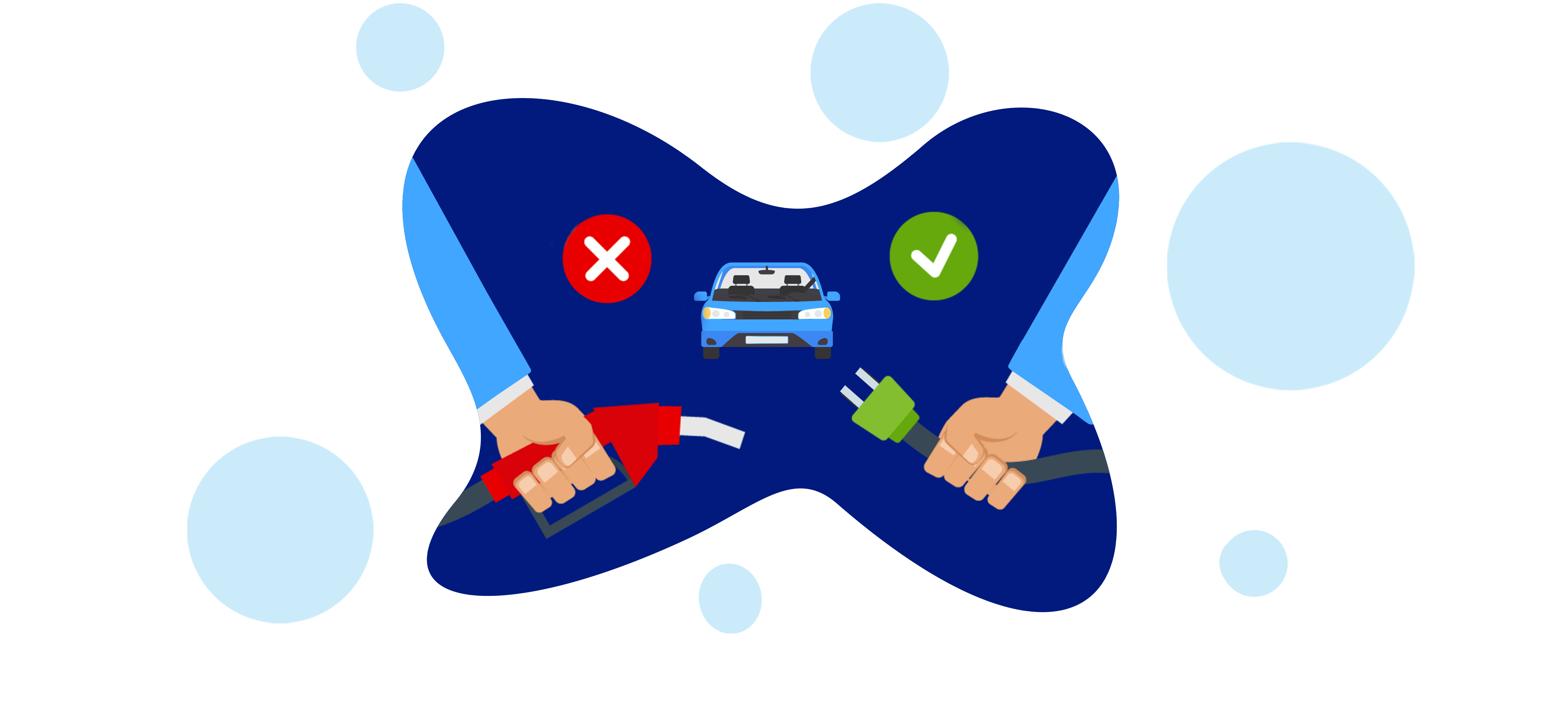รถยนต์น้ำมันใช้เครื่องยนต์สันดาปภายในที่ปล่อยก๊าซคาร์บอนไดออกไซด์ (CO2) ซึ่งก่อให้เกิดมลพิษ ในขณะที่รถยนต์ไฟฟ้าใช้มอเตอร์ไฟฟ้าขับเคลื่อนและไม่มีการปล่อย CO2 ออกมาโดยตรง