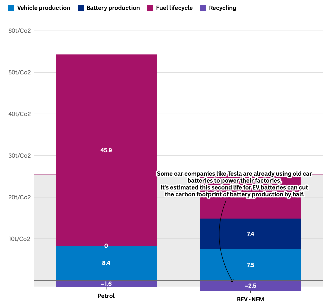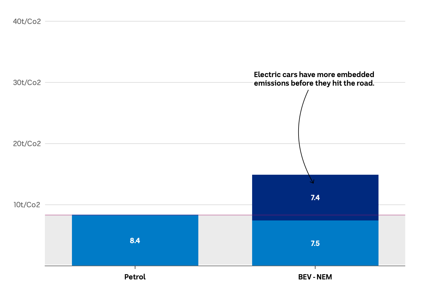 แบตเตอรี่ที่ผลิตในประเทศจีนมีการปล่อยมลพิษสูงกว่าแบตเตอรี่ที่ผลิตในยุโรป และเนื่องจากรถยนต์ไฟฟ้าของออสเตรเลียส่วนใหญ่ในปัจจุบันก็เป็นแบตเตอรี่ที่ผลิตในจีนทั้งนั้น
