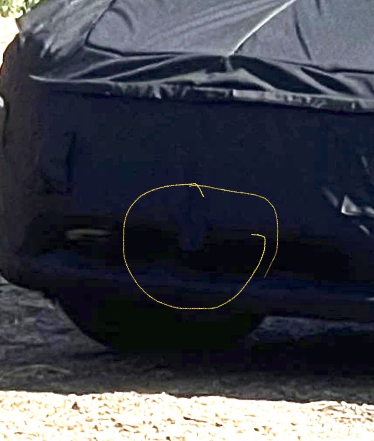 เมื่อซูมภาพใกล้ ๆ แล้ว เห็นได้ว่ากล้องถูกติดตั้งที่ด้านหน้าเหมือนกับ Tesla Cybertruck ด้วย