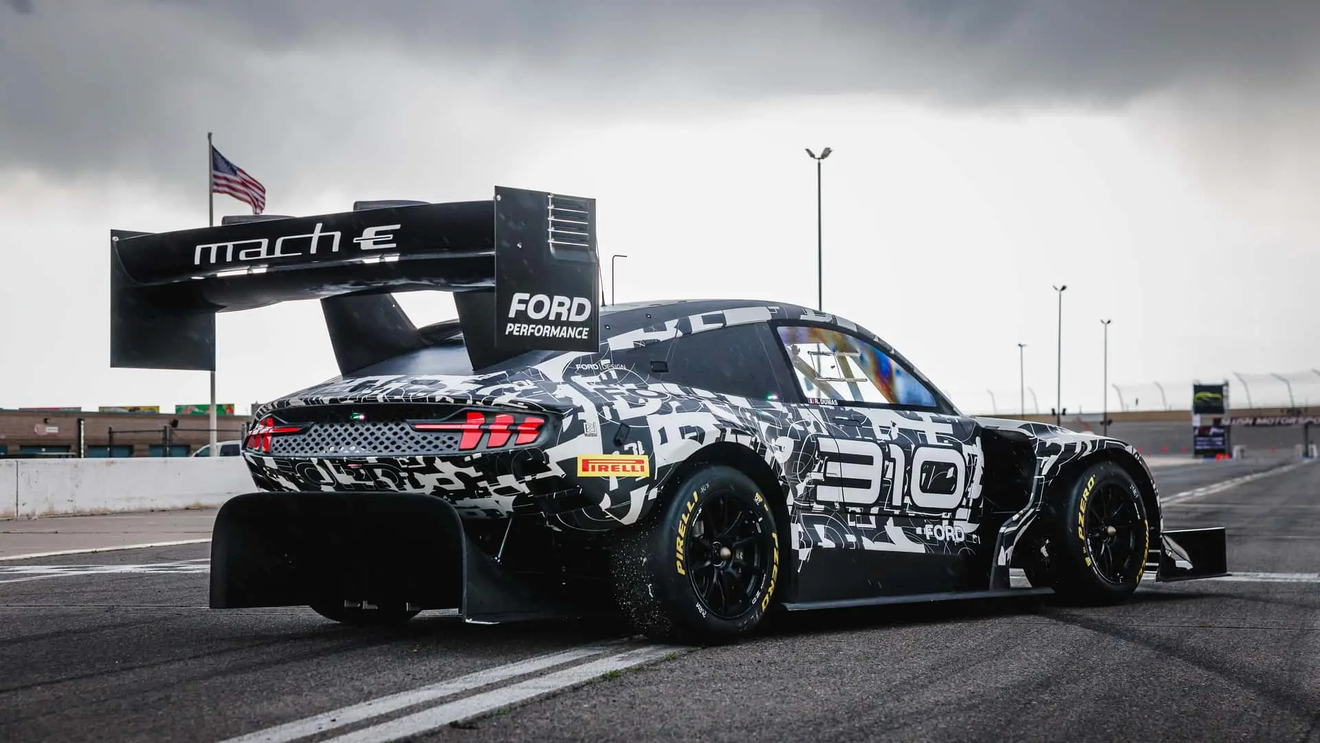คันนี้ยังมีความสูงตัวรถต่ำกว่า Mach-E รุ่นปกติ พร้อมซุ้มสุดโป้งที่ได้ยาง Pirelli แบบ slick สำหรับแข่งโดยเฉพาะ