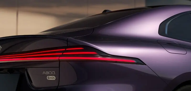 สิ่งที่โดดเด่นที่สุดคือไฟหน้าแบบเส้นเดียวที่ยาวถึง 6 เมตร ซึ่งทางผู้ผลิตระบุว่าเป็นไฟหน้าเส้นยาวที่สุดในโลก ส่วนไฟท้ายประกอบด้วยเส้นไฟสามเส้น และมีตราสัญลักษณ์ A800 พร้อมโลโก้ Huawei ADS