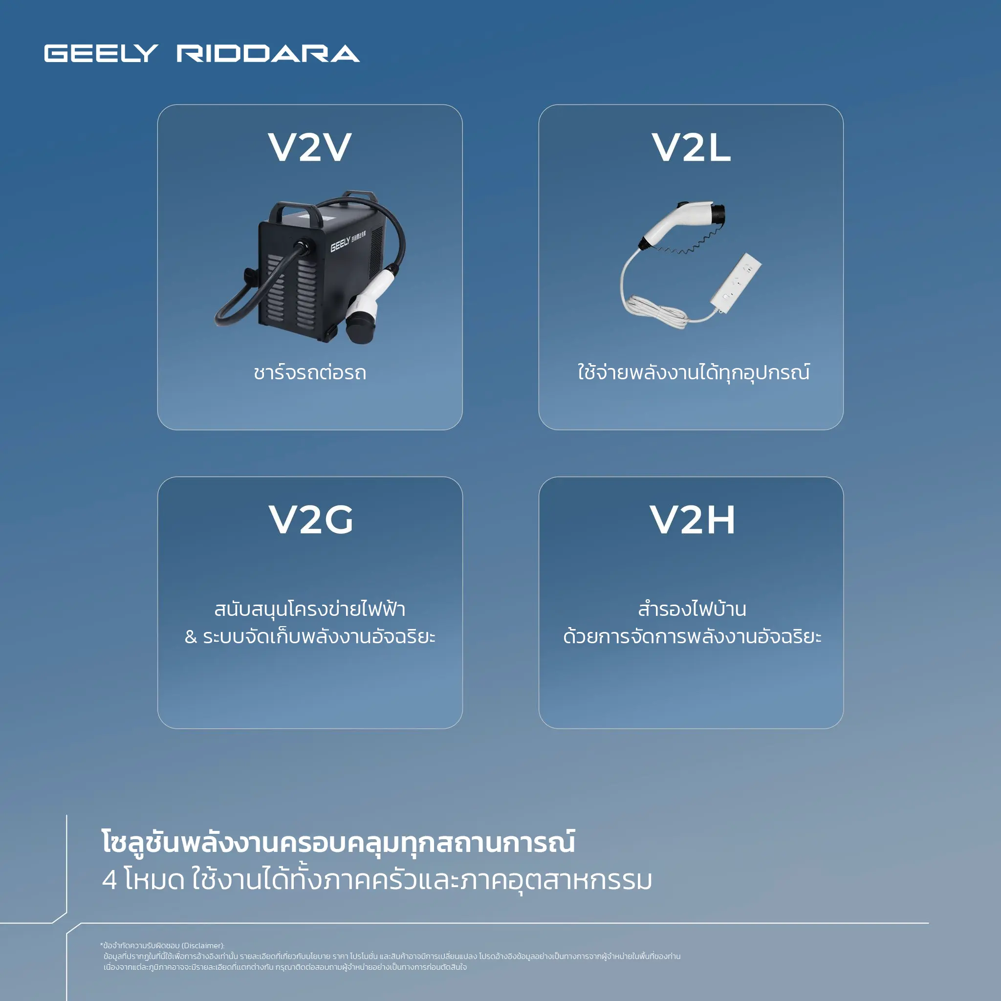 GEELY RIDDARA เปิดตัว OmniPower Stack แพลตฟอร์มพลังงานอัจฉริยะสำหรับรถกระบะรายแรก ที่รวมระบบชาร์จ จัดเก็บ และจ่ายพลังงานเข้าด้วยกัน แพลตฟอร์มนี้ทำให้รถทำหน้าที่เป็น สถานีพลังงานเคลื่อนที่ รองรับการดึงพลังงานจากหลายแหล่ง (ไฟบ้าน, โซลาร์) และจ่ายไฟได้หลากหลายรูปแบบ (V2L, V2H, V2G) ด้วยกำลังจ่ายสูงถึง 21 kW OmniPower Stack บริหารจัดการด้วยระบบ G-EMS เพื่อประสิทธิภาพสูงสุด มอบประโยชน์ด้านค่าไฟบ้านเป็นศูนย์ พลังงานสำรองไร้เสียงรบกวน และความยืดหยุ่นในการใช้งานภาคสนามหรือยามฉุกเฉิน