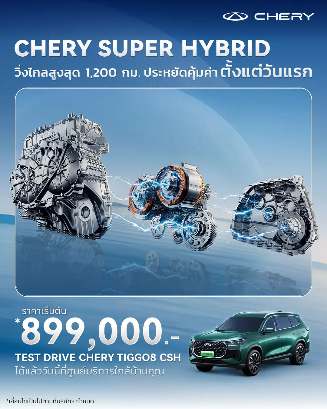 ท่านสามารถสัมผัสนวัตกรรมใหม่จาก CHERY TIGGO 8 CSH ราคาเริ่มต้นเพียง 899,000 บาทพร้อมข้อเสนอพิเศษสำหรับผู้ที่สนใจไม่ควรพลาดโอกาส รีบจองวันนี้ก่อน TIGGO 8 CSH จะปรับขึ้นราคา นอกเหนือจากยนตรกรรมคุณภาพสูง เชอรี ประเทศไทย ยังมุ่งมั่นมอบงานบริการหลังการขาย ทั้งการรับประกันคุณภาพ ศูนย์บริการและอะไหล่ที่พร้อมให้บริการลูกค้า รวมถึงเครือข่ายโชว์รูมและผู้จำหน่ายกว่า 42 แห่งทั่วประเทศ เพื่อให้ลูกค้าอุ่นใจในทุกการขับขี่